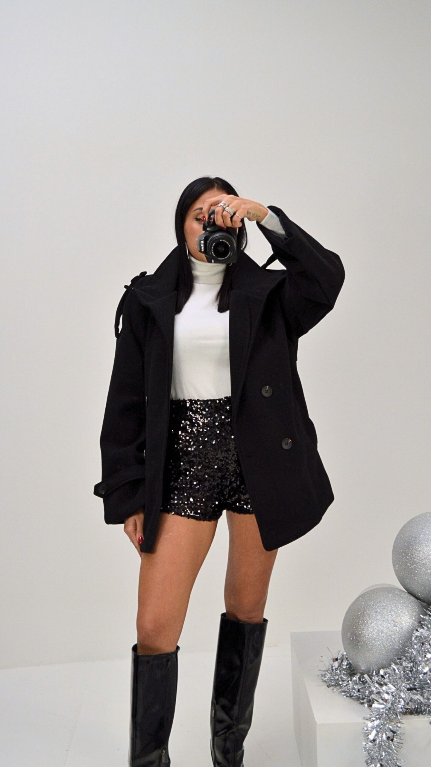 Il modello si distingue per le maniche lunghe rifinite con spacchi e lacci lunghi ai polsi. La parte inferiore è caratterizzata da un intenso drappeggio laterale sulla gonna. Spalline leggermente strutturate per un finish sofisticato e deciso.